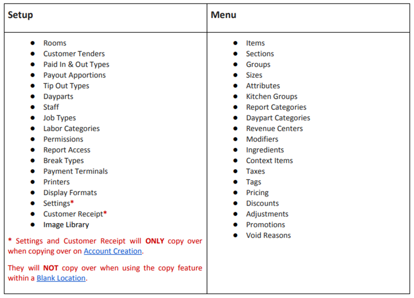 If you are copying over to a multi-location account, make sure the account menu is built to accommodate all locations. As a new location is added to the existing account, you can only copy from existing locations WITHIN the account it is nested under.