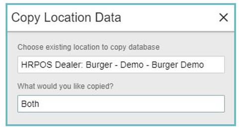 The Copy Location Data box will appear. - In the Choose existing location to copy database list, select the location you would like to copy from.
