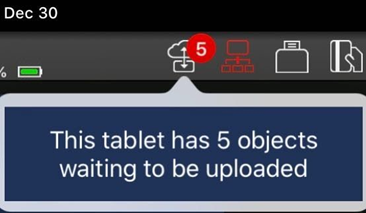 Within the POS, you can tell at a quick glance if it has lost its internet connection by looking at the Cloud Sync icon at the top of the screen. If the connection is lost, the POS displays the icon with a red badge and a number in its corner. This indicates that the tablet is not communicating with the cloud and may be unable to communicate with the Internet.