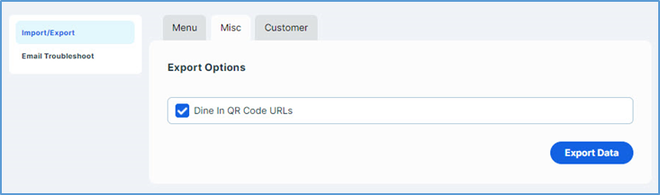 - Select the Dine In QR Code URLs check box.