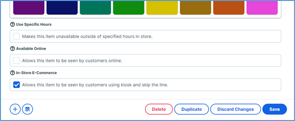To include an item in the menu on the eat-in online order website, you must enable the In-Store E-Commerce option for the specific item, its menu section, or its menu group.