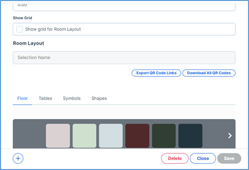 - In the room’s settings panel, in the Room Layout area, click Export QR Code Links.