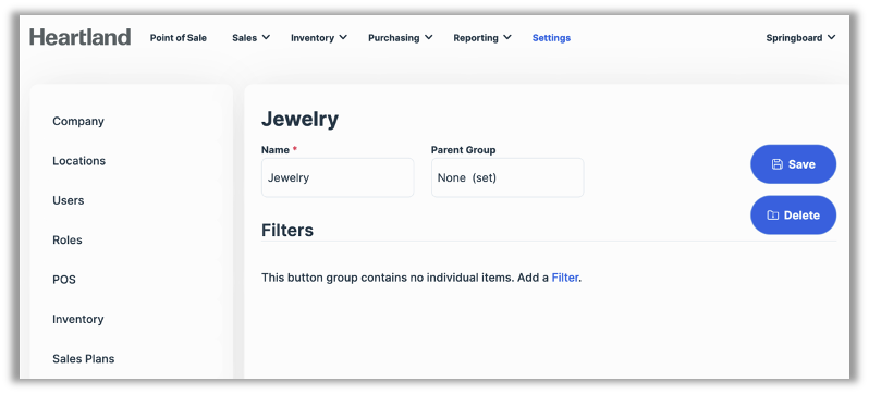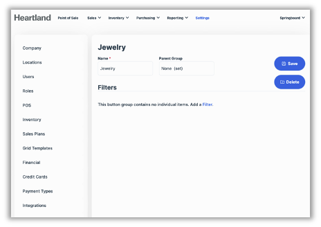 - To edit or delete a button group, go to Settings and select POS from the lefthand menu.
