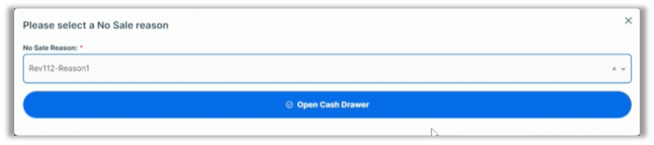 Should the need arise to open the cash drawer without a sale, simply tap the No Sale button from the Quick Actions modal. At the resulting prompt, select a reason and then tap Open Cash Drawer to complete the action.