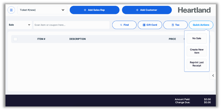 Here we describe the use of Quick Action buttons in Heartland Retail. These buttons allow users to complete frequently used actions in one convenient touch.