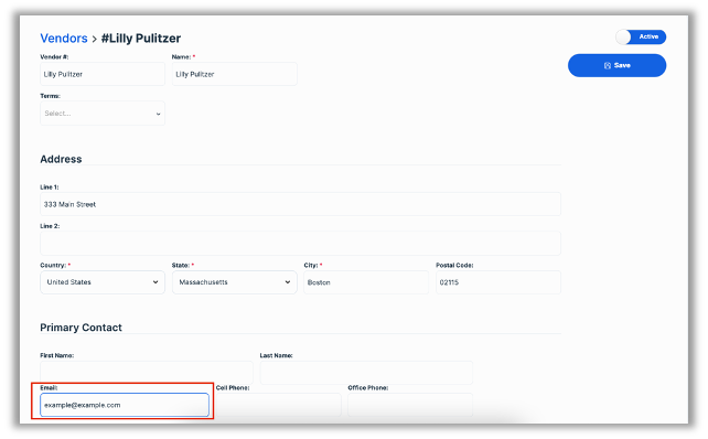 The system will automatically create an email from the designated Email Sender Address in Settings | Receipts, and to the vendor’s designated email address, as displayed in Send to field in the prompt above, and will attach the purchase order in the selected format(s).