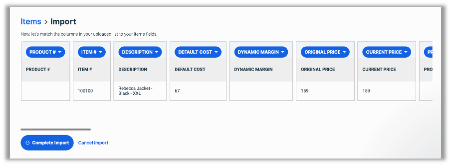 - If your import file contains new grids and/or items, the POS will automatically add these to your POS data during the import process.