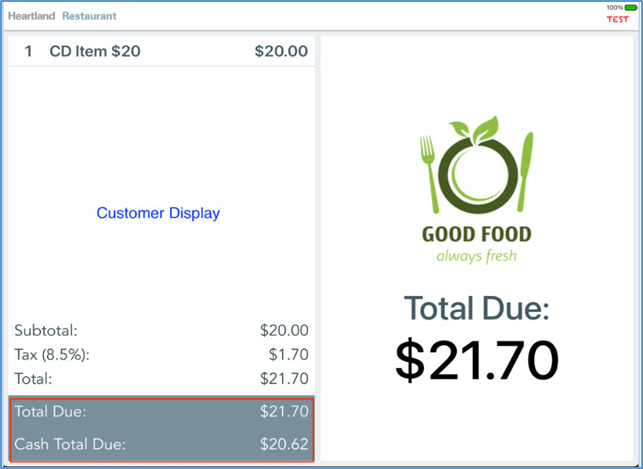 In the Customer Display, the Total and Cash Total will display on separate lines.