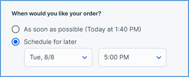 - In the When would you like your order? area, select As soon as possible or Schedule for later.