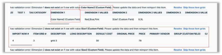 In previous versions, if you performed a grid import containing one or more missing dimension names, the POS would display an undefined error with no specific information as to the source of the problem. With this release, in such instances, the POS displays a message specifying the problem so you can correct it and try again.