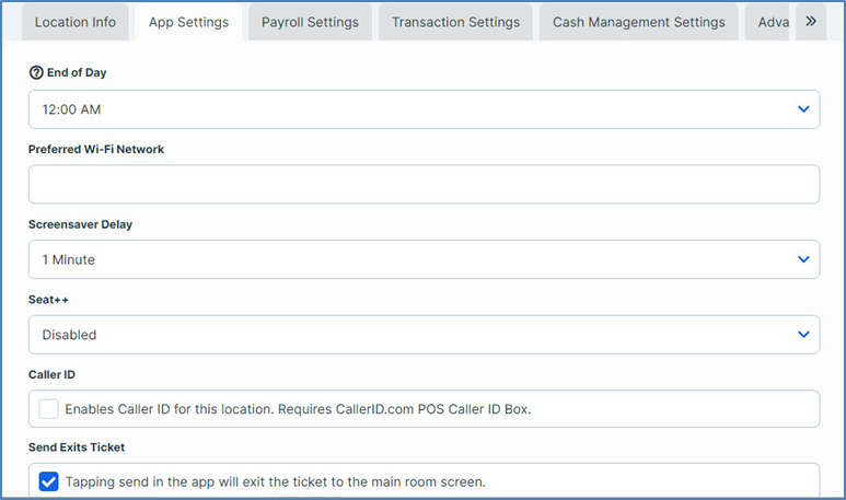 Send Exits Ticket: If you select this check box, the POS will exit a ticket when you tap Send and access the main room screen.