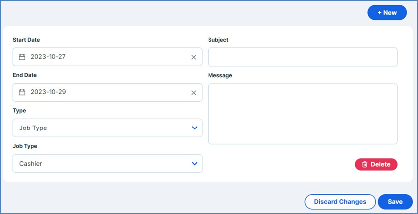 Type: In this list, you can select the group that will receive this message. If you select Everyone, the POS will display the message to all staff members when they log in.