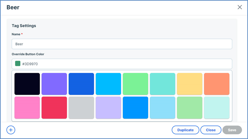 Override Button Color: Click to choose one of the pre-set colors or choose a color then click the box in the top right corner and use the white circle and slider tool to customize the color.