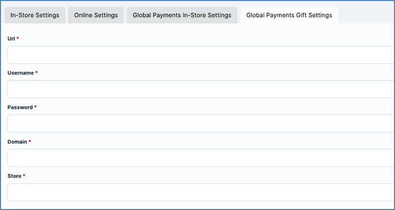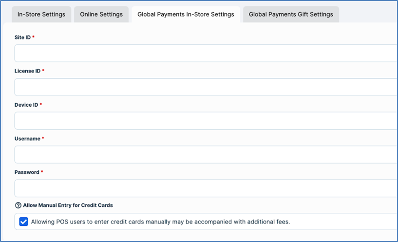 Gift Card: If the location uses a service to process gift cards, select Global Payments.
