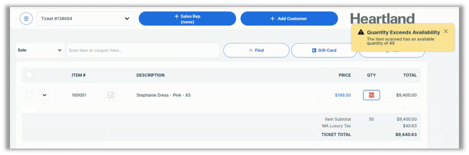 HRTL-10155 Display Alert When Adding Unavailable Quantity to Ticket