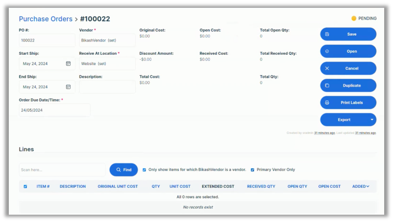 So that merchants can drill down even further with vendor filtering in purchase orders, we have added a Primary Vendor Only checkbox to the filtering options. This box can be checked only if the first checkbox for vendor filtering is checked. When Primary Vendor Only is checked, search results will include only items with the selected vendor as the primary vendor.
