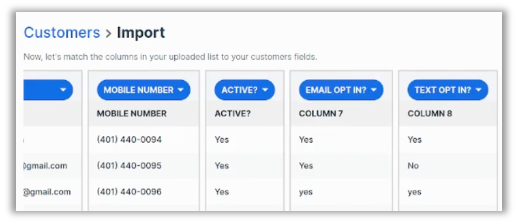 So that merchants can easily perform bulk updates for customers who have opted in to receive marketing materials via email and text, we have added ‘Email Opt In?’ and ‘Text Opt In?’ fields to the customer import template.