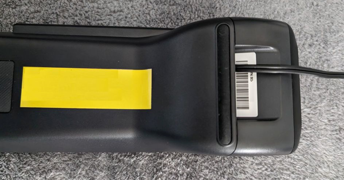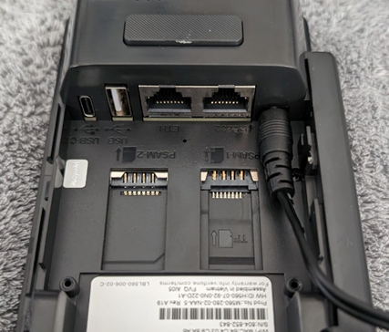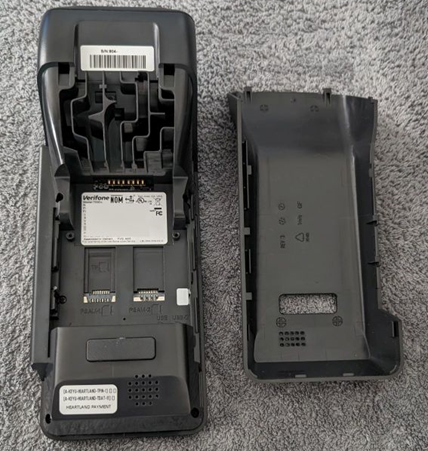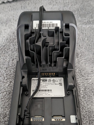 - Turn the Verifone device upside down.