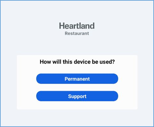 After submitting a login code, the POS will prompt you to specify how the device will be used. - Tap Permanent.