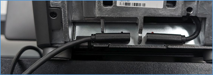 - Once connected, thread the power cable through the access slots near the top of the device.