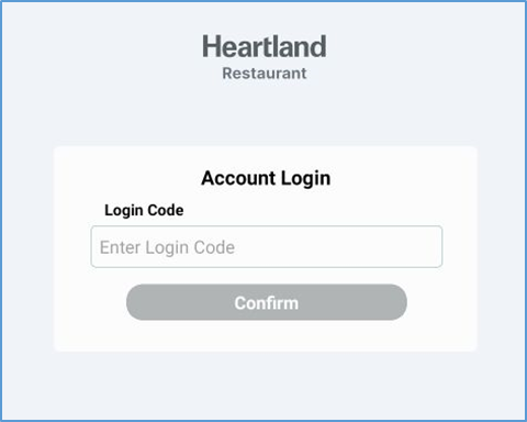 The Restaurant POS app will display a prompt for a Device Login Code. - Enter a valid Device Login Code, then tap Confirm.