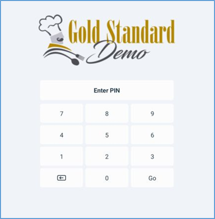 The Restaurant app will then display the location’s PIN screen. - Enter a valid PIN, then tap Go.