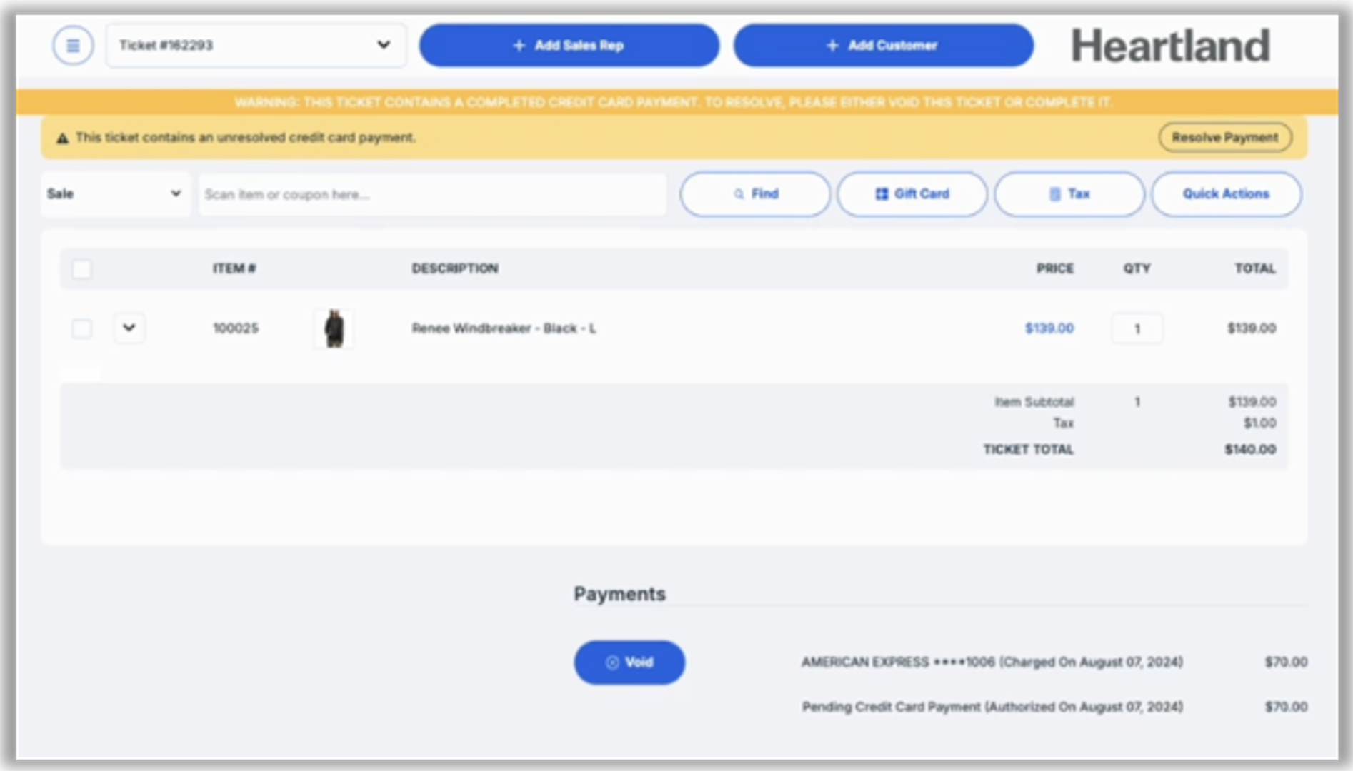 With this release, in such situations, the POS will display only the unresolved payment notification, as pictured below, so the user can easily recognize what action is required.