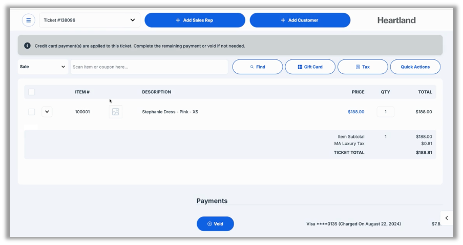 In previous versions, if you added a sales rep to a ticket, the POS did not display the sales rep unless you refreshed the page. With this release, the POS displays the sales rep immediately upon adding as intended.