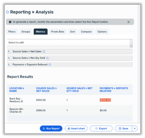 With the addition of Deposits Relieved to the available metrics in Analysis Reporting, merchants can include this critical information when building custom reports, thereby ensuring a more complete and accurate reflection of daily financial activities.