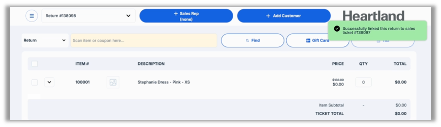 As well, when you scan or add items to the return that were present on the original sale ticket, they will automatically be added with a negative quantity.