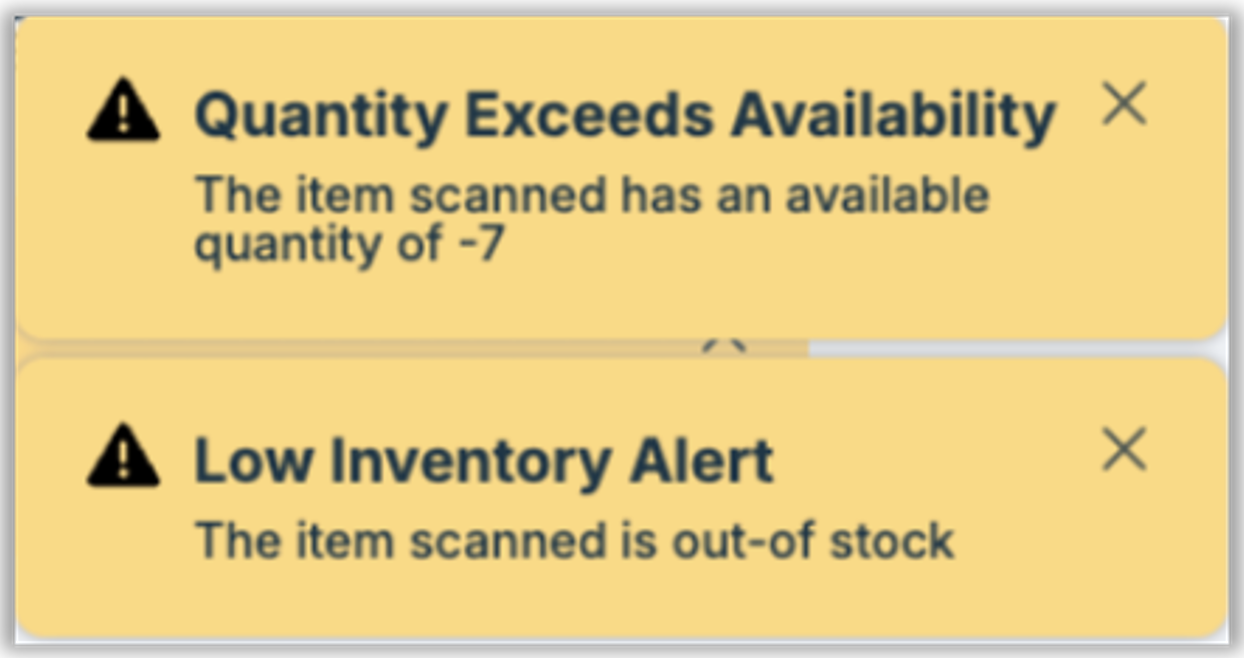 We have fixed an issue that caused the POS to display two separate inventory alerts when a user attempted to add an out-of-stock item to a ticket, as pictured here: