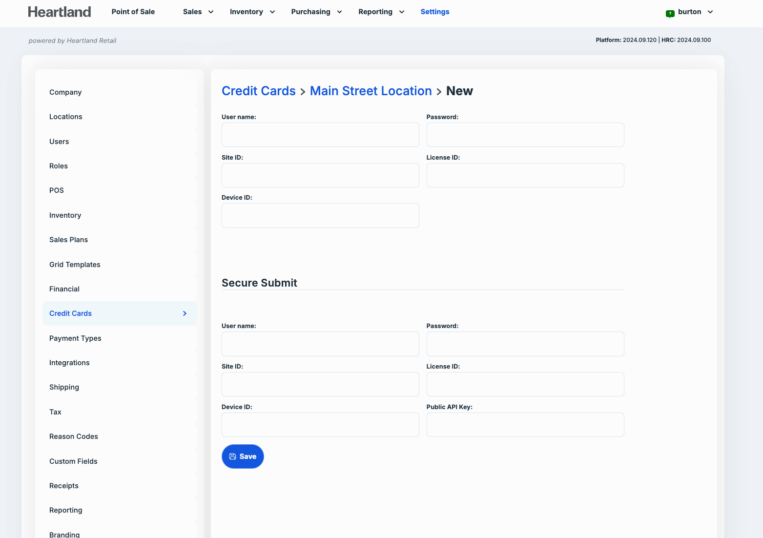 ✅ In the back office, go to Settings, select Credit Cards, select location, and either add or edit