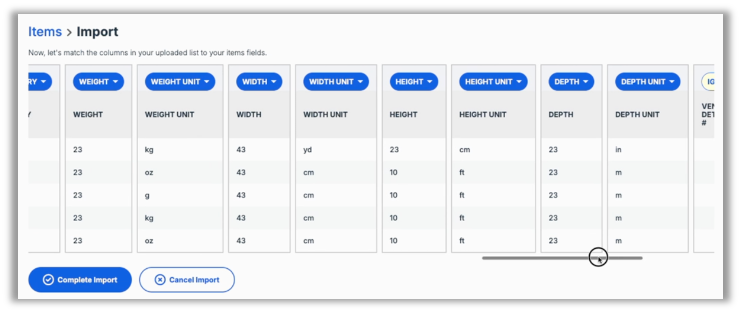 To facilitate the configuration of inventory items using the recently implemented additional units of measure, we now include these units of measure in item imports.