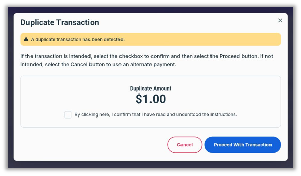 To further our goal toward consistency across the Retail app, we have updated the format of the Duplicate Transaction modal to match those in other areas of the system.