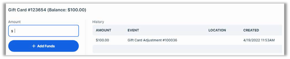 To perform a simple lookup, or to adjust a gift card’s balance, select Point of Sale and then select the Gift Card button near the top right.
