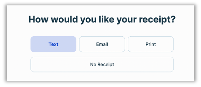 Upon completion of a transaction, the CFD will prompt the customer to select their preferred receipt delivery. The options displayed will vary since they are based on each location’s configuration.