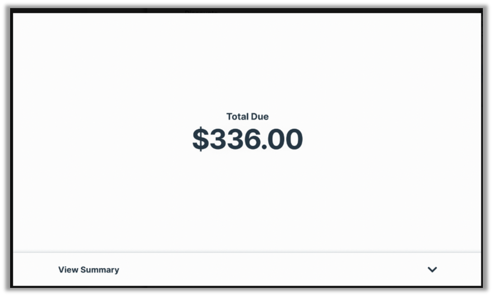Once you have added all desired items, the CFD will display the ticket total screen. This screen includes a View Summary option that is collapsed by default.