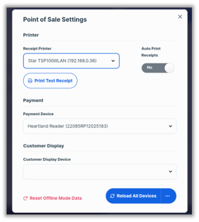 For merchants offering text and email receipt options, we recommend setting the Automatically Print Receipts in the Point of Sale Settings screen to No so that receipts print only when the customer selects the Print button.