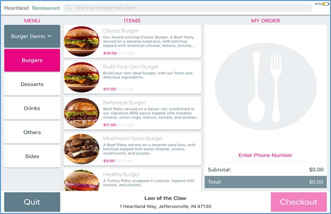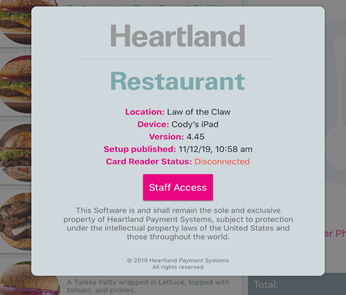 - In the Kiosk’s main ordering screen, tap the Heartland Restaurant logo (top left).