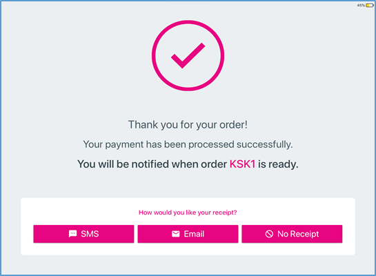 Tap SMS to receive the receipt as a text message to your phone.