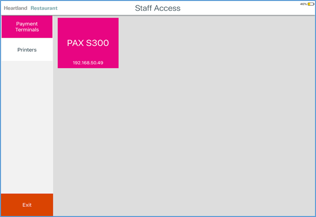The app displays the Staff Access screen. - In the Staff Access screen, tap the Payment Terminals tab.