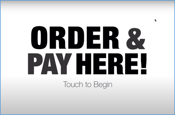 The app will then display the Order & Pay Here! panel. If you configured the POS to display images for a slideshow, it will begin displaying those images. - Tap the screen to begin.