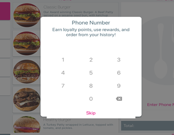 If the location uses the Order History feature, the Kiosk will offer the option of selecting one of your previous orders after you enter your phone number.