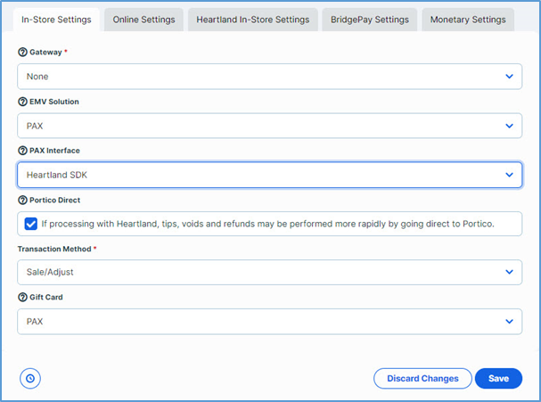 - Click the Heartland In-Store Settings tab.