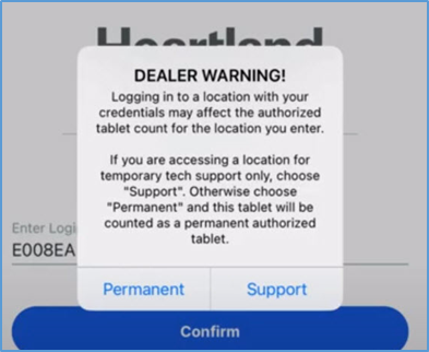 Choosing Permanent will use a license on the account. If you are just troubleshooting, using the Support option will not use a license. The Support Mode license will last for one hour. - In the next screen, select the appropriate location, then tap Next.