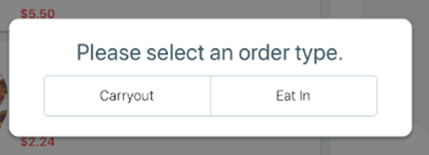 After connecting the MSR reader, verify that its sound volume is clearly audible. - At the Please select an order type prompt, tap either Carryout or Eat In.