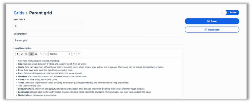 For instances where merchants wish to use an existing grid’s parameters for new items, we have added the option to duplicate grids. Doing so will generate a new grid with all of the same attributes, saving merchants time and effort, and eliminating the potential for errors and omissions.