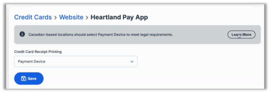 As groundwork for functionality that will be introduced with a forthcoming release slated for the end of January, we have added Payment Device as an option to the dropdown for Credit Card Receipt Printing. This addition ensures that we meet Canadian regulatory requirements with regard to credit card receipt requirements, including dual-copy receipts for all transactions.