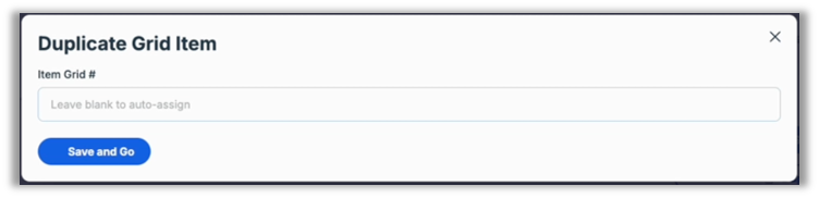 Enter desired name for new grid and select Save and Go. Please note that, if you do not assign a name, the system will assign a name for you. In this case, the auto-assigned name would be ‘Duplicate Grid Item’.