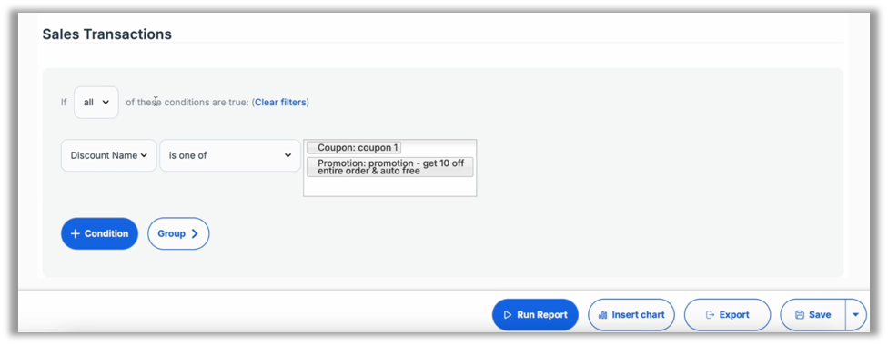 This release introduces the option to apply a discount filter to analysis reports, allowing merchants to choose only those coupons or promotions they wish to view at any given time. The filter can be found in the newly added Sales Transactions section of the reporting page, located just under Metrics.